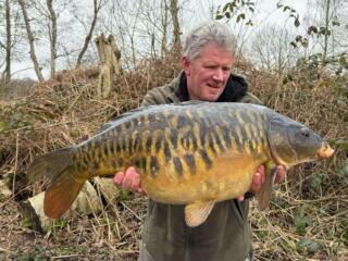 There are still a handful of old, original fish in the lake which are all absolute gems. In the winter of 2017/18 we complimented the stock with some fresh blood and introduced 18 fish between 16-24lb. Since then, we have introduced another 30-40 fish, many of which were absolutely stunning scaly mirrors, up to low twenties. These fish have really flourished and darkened up nicely in the clear water, offering the lake a really bright future.